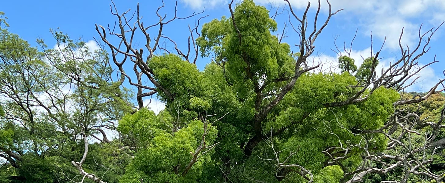 川棚の北村地区がある下関市豊浦町は、山口県の西部に位置します。西は響灘、北は狗留孫山(くるそんざん)、東は鬼ヶ城山(おにがじょうさん)に囲まれた、自然に恵まれた場所です。ユビナガコウモリの群生地として知られる大吼谷蝙蝠洞(おおごうやこうもりどう)や、樹齢が推定1000年以上とされるクスの大樹「クスの森」など、国指定の天然記念物も複数残されています。